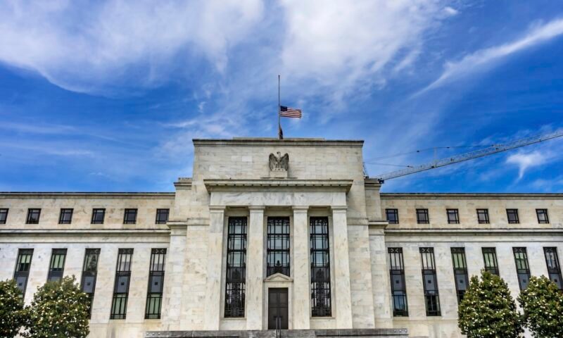Front view of the Federal Reserve Headquarters building in Washington, D.C., under a bright blue sky. This image represents the latest report from the Federal Reserve Bank of Philadelphia analyzing the impact of upcoming graduate student loan caps for 2026, which could leave nearly one in three borrowers facing a funding gap. Source: The College Investor